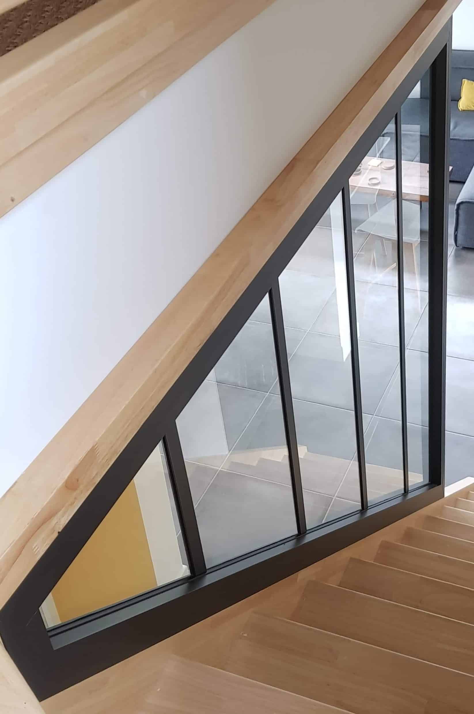Ce garde-corps en aluminium a repris les codes des verrières d’intérieur pour un style contemporain.