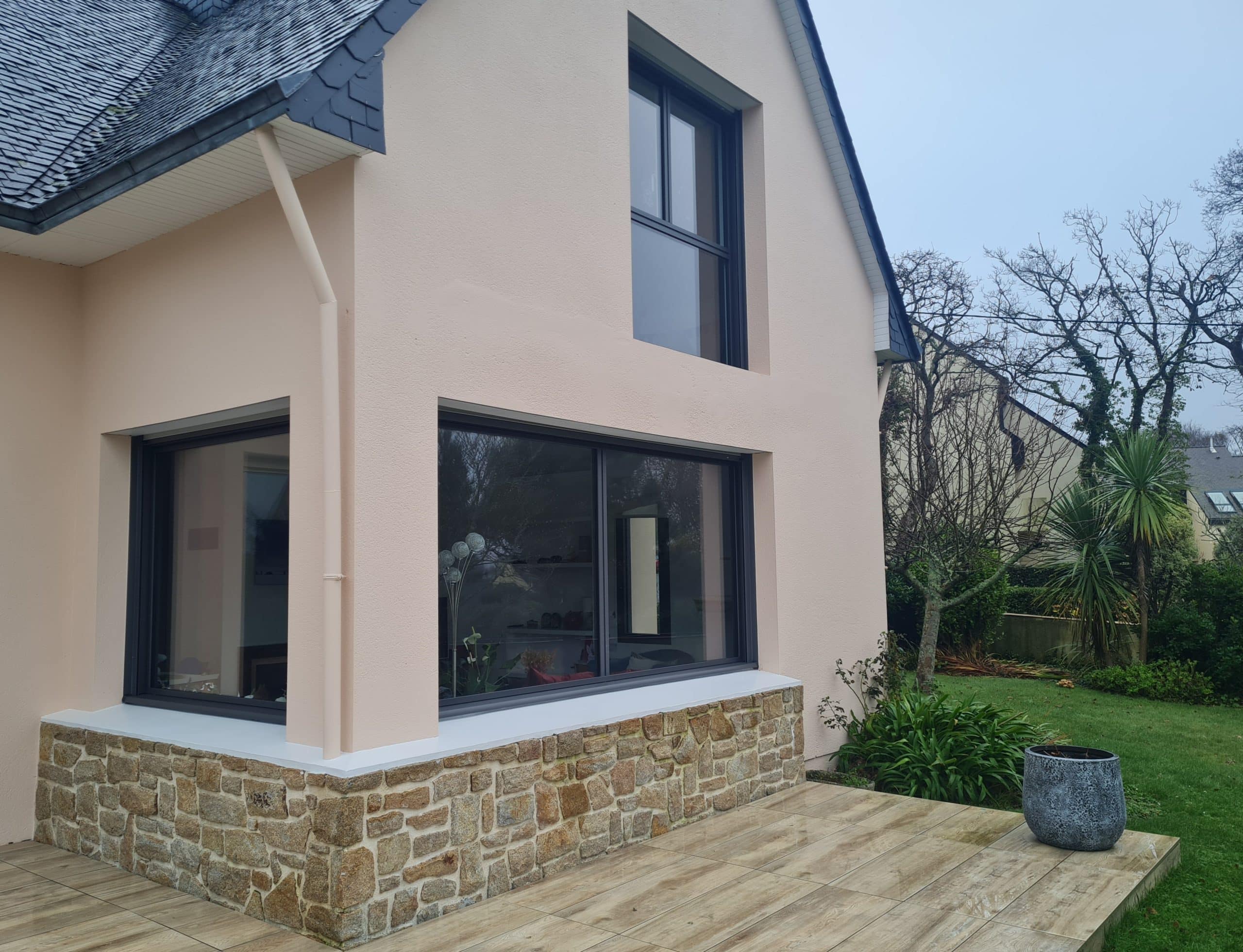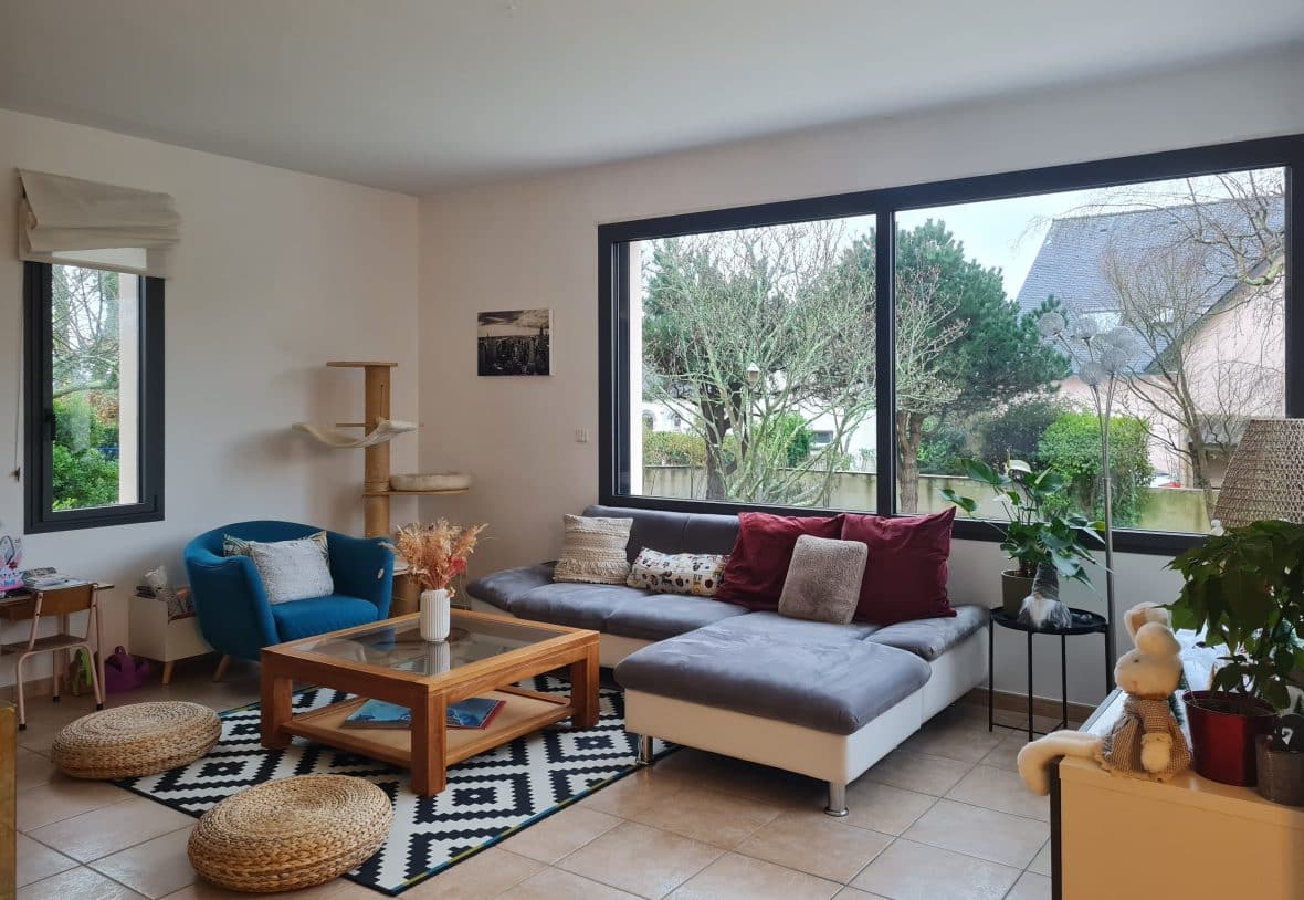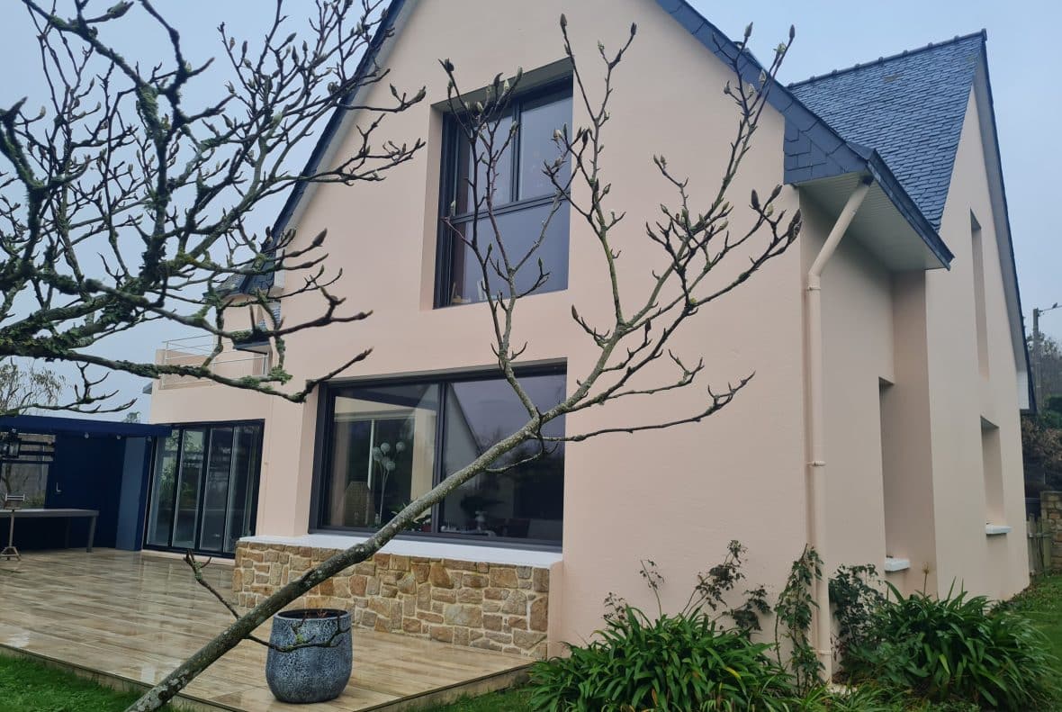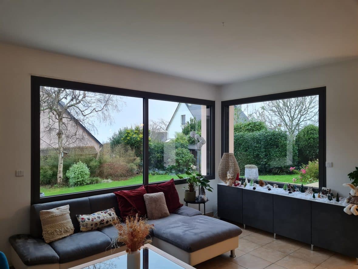 L’ensemble des menuiseries ont été remplacées par des menuiseries aluminium gris 2900sablé avec volet roulants électriques. Les menuiseries aluminium assurent une isolation thermique et phonique optimale pour le confort quotidien. Elles optimisent au maximum les apports solaires et la lumière naturelle.
